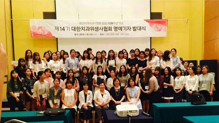 2016년 8월 6일 (토) 그랜드힐튼 서울 그랜드볼룸 에서 제 14기 대한치과위생사협회 명예기자 발대식이 진행되었습니다. 이 날 건양대학교 치위생학과 14학번 최지원, 박해련 학생은 13기 학생명예기자로서 우수취재상을 수상하였습니다. 제 14기 학생명예기자로 15학번 김다애, 백지연 학생이 임명되었습니다.^-^ |