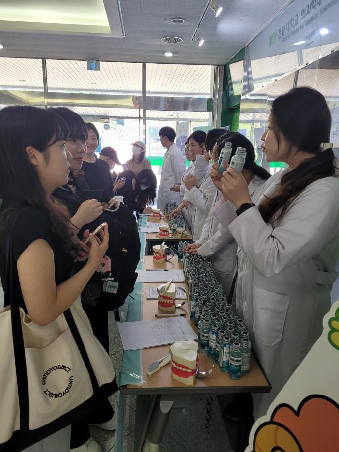 또한 이번 캠페인 기간 동안 대한구강보건협회(협회장 박용덕)의 지원을 통해 리스테린과 칫솔을 건양대 재학생 및 교직원, 건양대학교 병원직원, 지역주민 300여명에게 전달하기도 했다. |