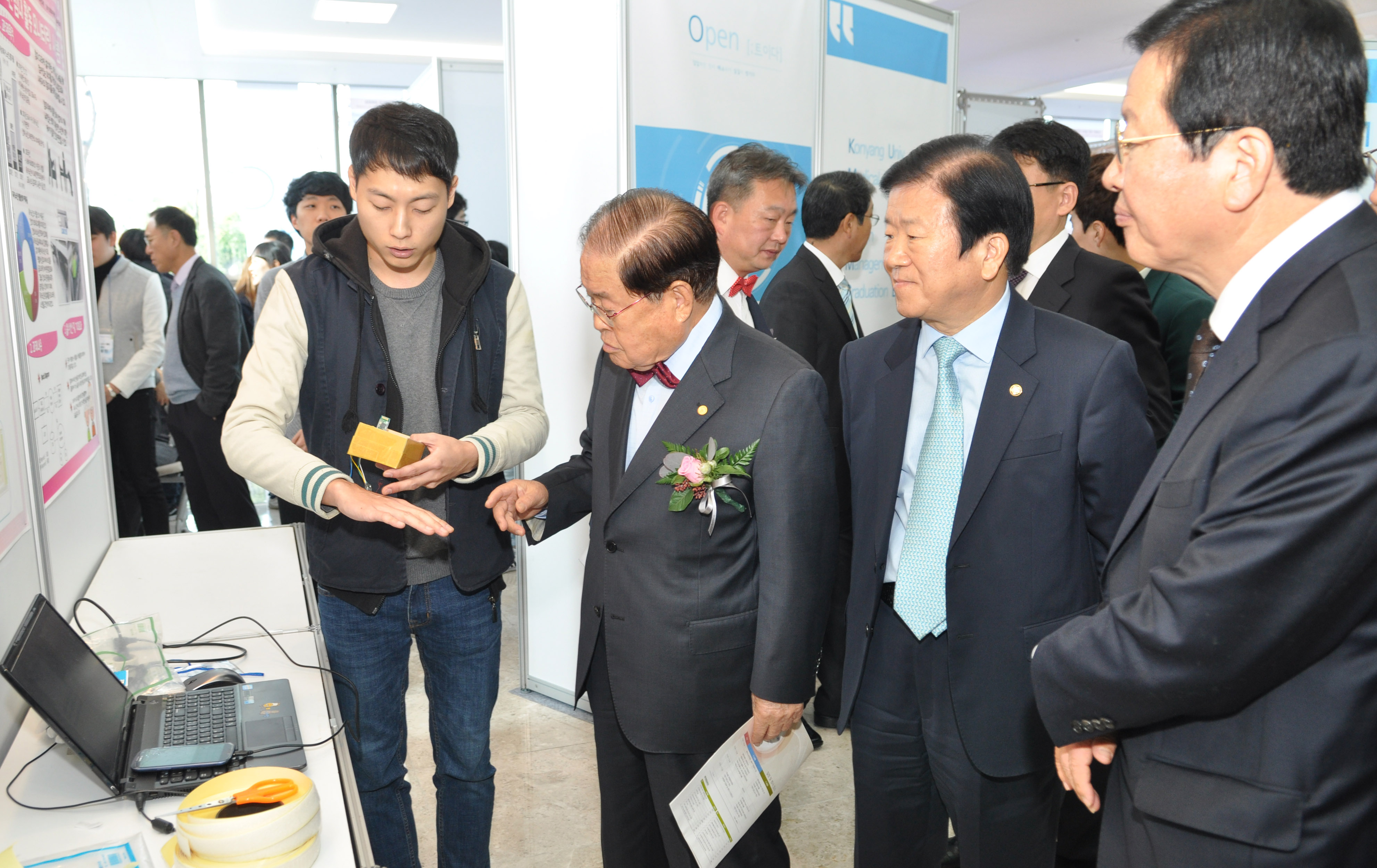 학생 작품을 보고 있는 왼쪽 두번째부터 김희수 건양대총장, 박병석 국회의원, 장종태 서구~.jpg
