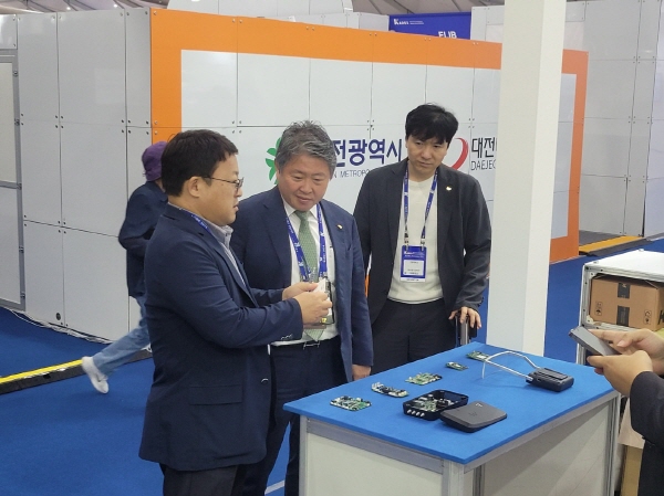 건양대 김용하 총장(가운데)이 2일 계룡대에서 열린 국제방위산업전시회에 참가해 현장을 둘러보는 모습 1.jpg