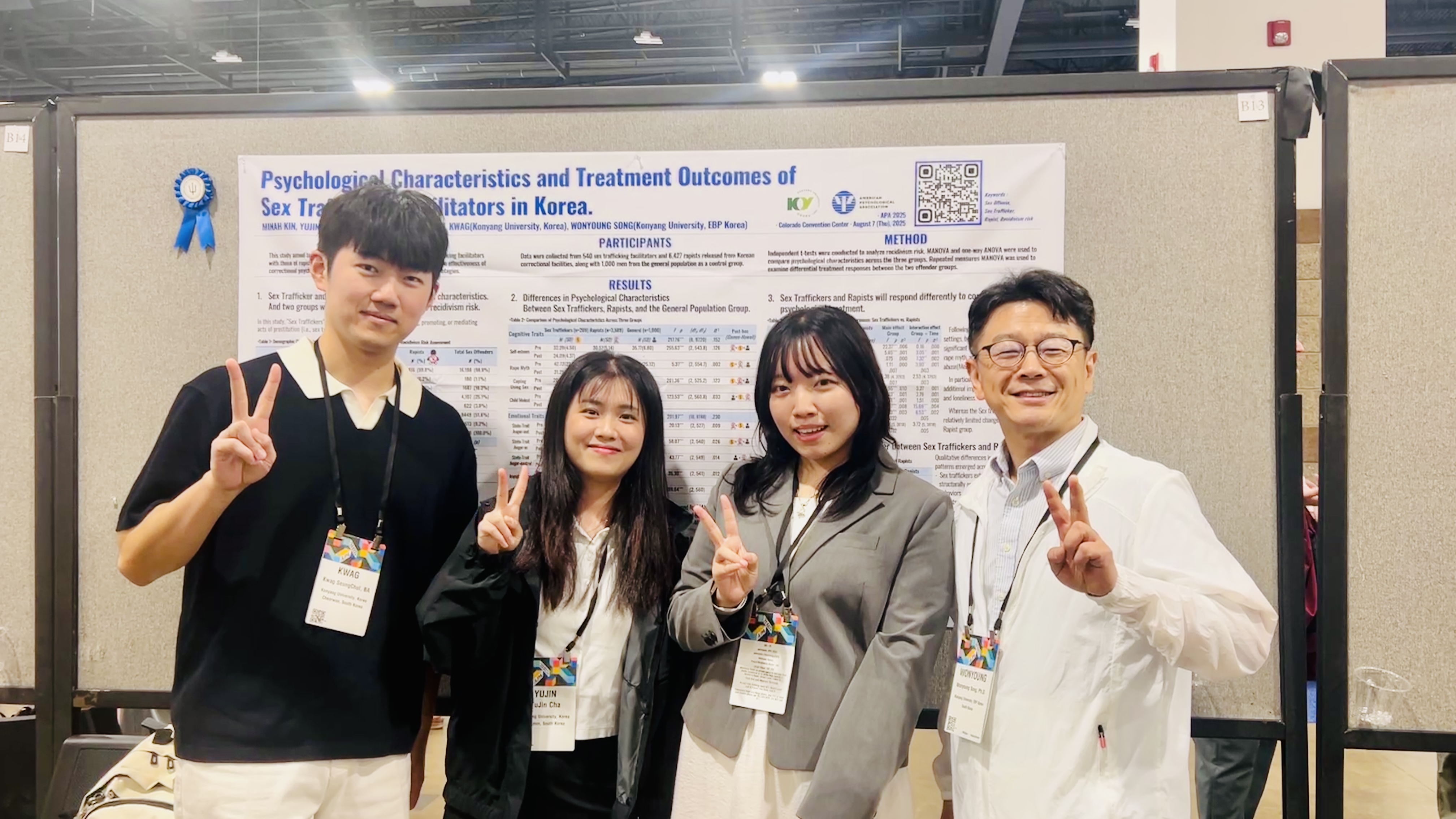건양대학교(총장 김용하)의 대학원 임상심리학 전공 대학원생들이 미국 덴버에서 개최된 미국심리학회(APA)에서 압도적인 연구 성과로 국제 학계의 뜨거운 관심을 사로잡았다. 대학원생들은 포스터 논문 발표와 함께 '임상심리분야 대학원생 우수상'을 수상하며 학교의 명예를 드높였다.