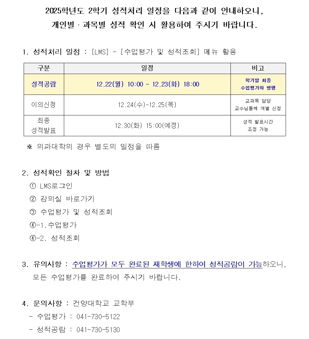 | 제목 | 2025학년도 2학기 성적처리 일정 안내 | ||||