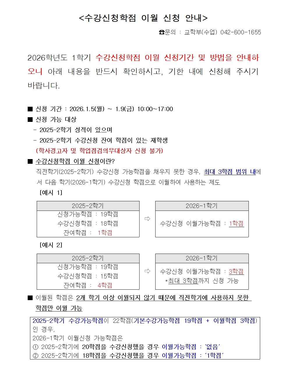 | 제목 | 2026-1학기 수강신청학점 이월 신청 안내 | ||||