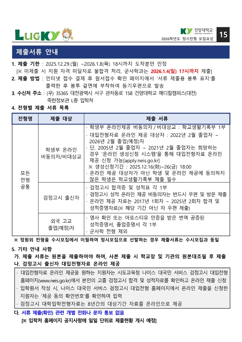 제출서류에 대해서 안내드리오니, 참고 바랍니다. / 2026학년도 정시 모집요강 기준